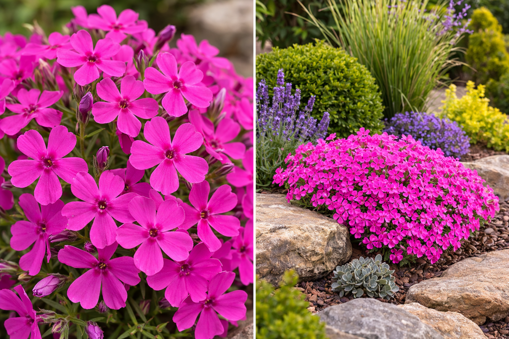 - Virágzás: Tavasszal, általában április-május között virágzik. A virágok szőnyegszerűen borítják a növényt, és lehetnek rózsaszín, fehér, lila, kék vagy piros színűek.