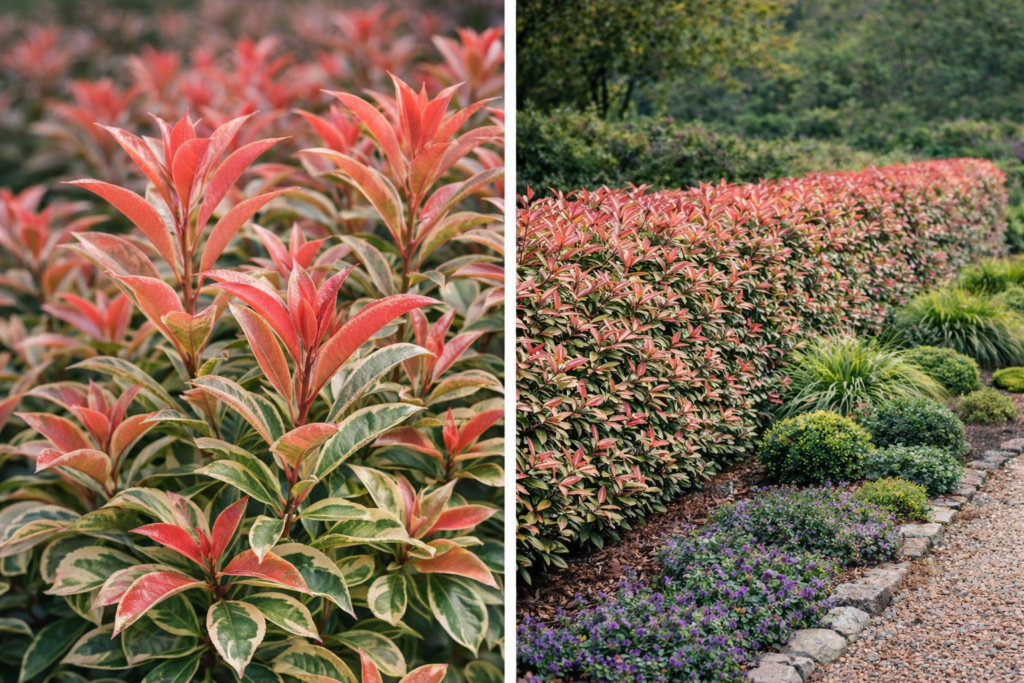 • Lombozat: Ragyogó piros hajtások tavasszal, amelyek az érés során fokozatosan zöldre váltanak. Az örökzöld levelek fényesek, oválisak, bőrszerűek.